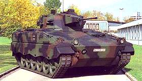 A l'issue de la procédure de préévaluation, qui s'est achevée à l'automne 1997, trois concurrents ont été sélectionnés: le Warrior anglais de GKN Defence, le CV 90 suédois de Hägglunds et le Kuka M12 allemand. Après le Warrior 2000 et le CV 9030, examinons les caractéristiques de ce concurrent éprouvé.