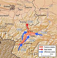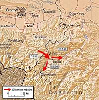 Shamil Basayev se prépare à lancer un second assaut, plus au nord. Les Forces russes s'attendent à une offensive sur les villes majeures de Khasavyurt et de Kizlyar, au centre du Daghestan. |