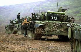 - L'option militaire territoriale, c'est-à-dire la conquête par la force des voies de communication, l'encerclement des villes majeures et l'établissement d'un cordon défensif dense autour des zones non contrôlées. Avantages: un contrôle important du territoire tchétchène et donc une position dominante dans d'éventuelles négociations, un ascendant politique sur les Etats voisins et sur les membres de la CEI, le maintien d'une certaine liberté d'action et une probabilité réduite de pertes importantes. Désavantages: l'engagement prolongé d'importantes forces militaires, un coût financier incompatible avec les exigences du FMI, une durée de campagne délicate pour l'opinion publique intérieure (spectre de l'Afghanistan) et l'assurance de certaines pressions internationales.
